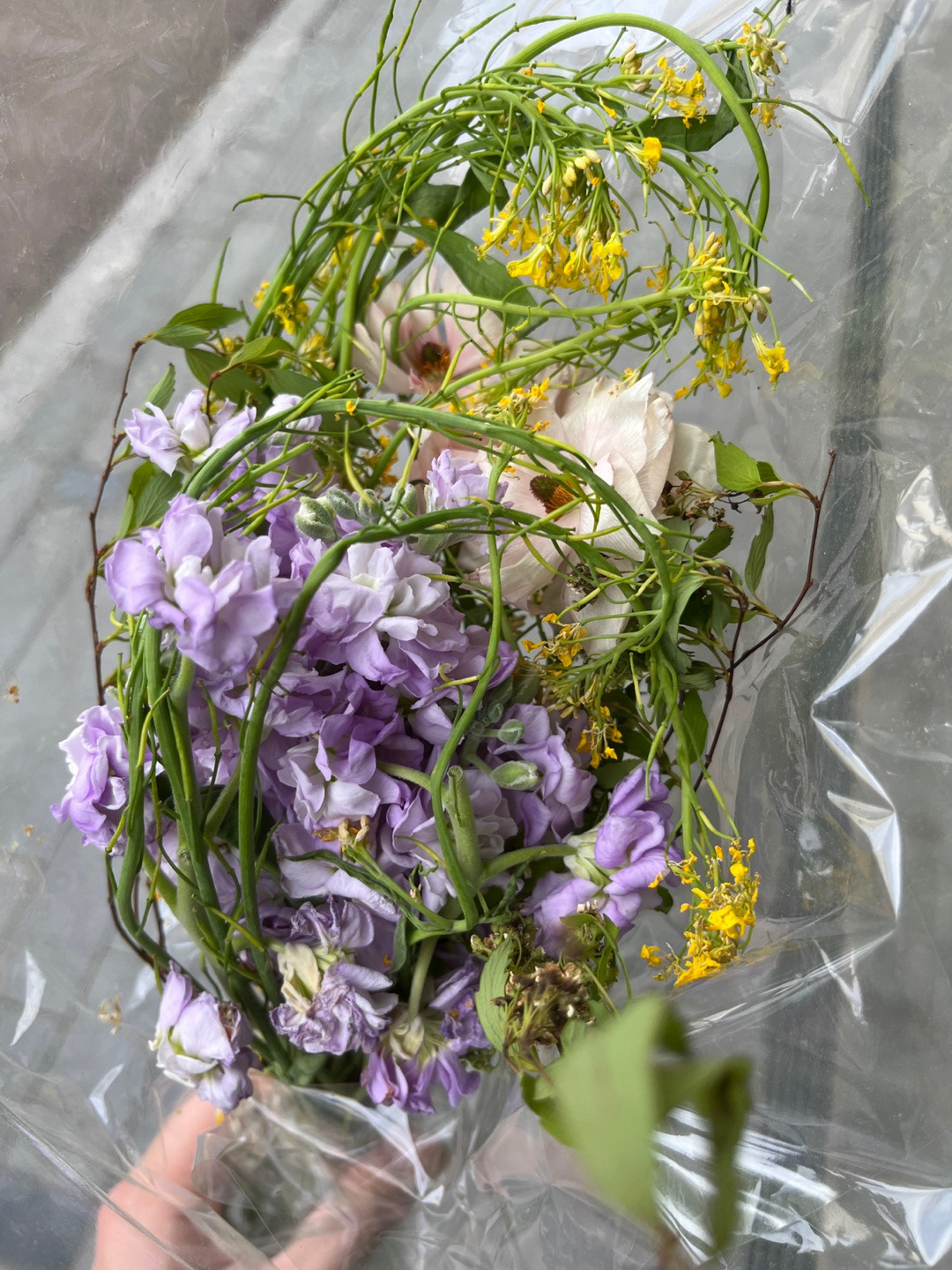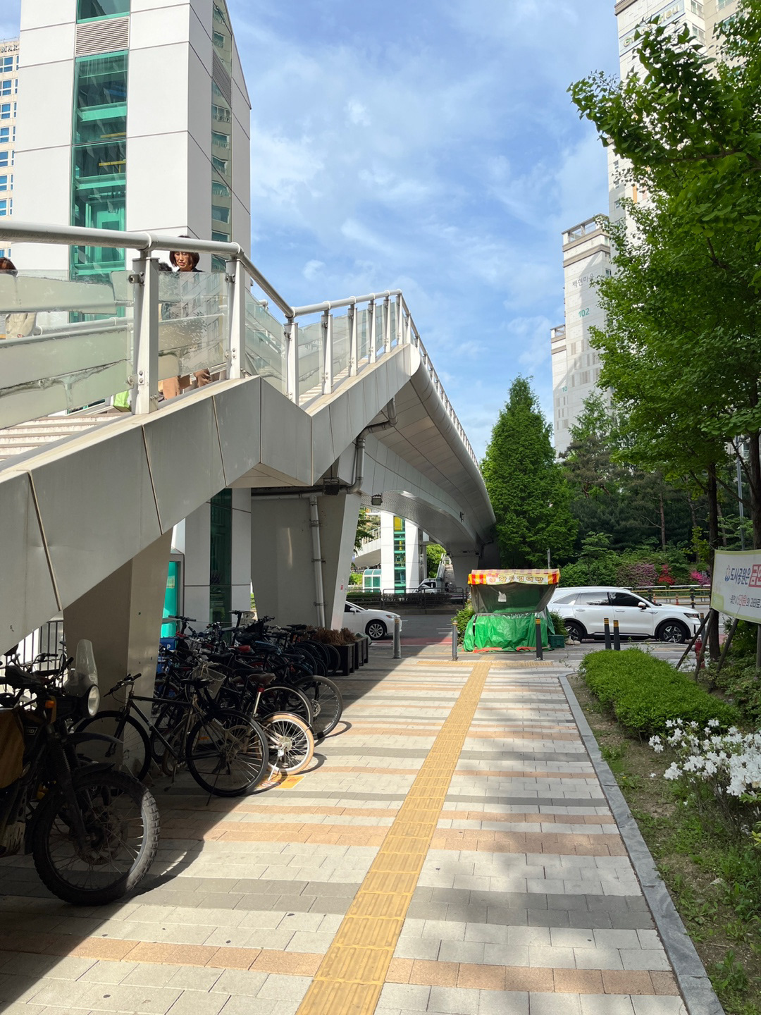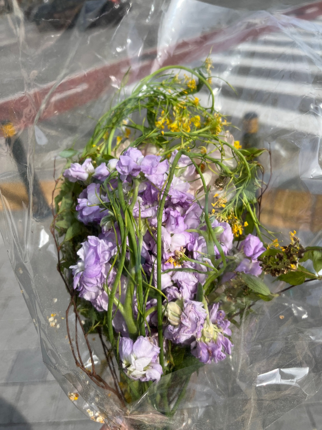 육교로 이어지는 계단에서 떨어져 있는 꽃다발 하나를 주웠다.
